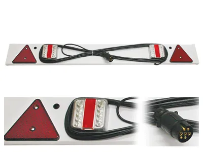 Komplet LED baglygtesæt fra AUTOLINE specielt designet til trailere og påhængsvogne. Sættet leveres med et solidt plastpanel på 1,20 meter med trekantede reflekser for maksimal synlighed. Inkluderer 10 meter bekablingskabel og 7-polet stik, så du nemt kan tilslutte til dit køretøj. Perfekt til campingvogne, båd- og maskintrailere eller andre påhængskøretøjer. 12V systemet passer til standard køretøjer, og LED-teknologien sikrer lavt strømforbrug og lang levetid. Med trekantreflekserne overholder du lovkravene, og den komplette bekabling gør installationen ligetil. Sættet giver dig alt, hvad du behøver for at få din trailer lovligt belyst og sikker i trafikken. 12 måneders garanti inkluderet.