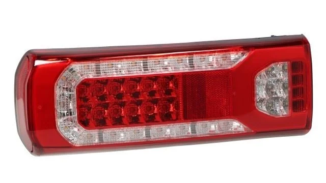 Full LED baglygte til venstre side på Mercedes-Benz Actros MP4 fra årgang 2018 og nyere. OE-nummer MMP40035443203. Denne baglygte samler alle tre vigtige funktioner i én kompakt enhed – bremselys, blinklys og positionslys. LED-teknologien giver dig en masse fordele: Lygtens levetid er markant bedre end almindelige pærer, og den bruger væsentligt mindre strøm, hvilket sparer på batteriet og generatoren. Perfekt løsning til vognmænd der vil optimere driftsomkostningerne uden at gå på kompromis med sikkerheden. Lygten er lavet som økonomisk kvalitetsvariant, så du får en fornuftig balance mellem pris og holdbarhed. Den passer præcis til Actros MP4's originale monteringspunkter og elektriske system, så du slipper for tilpasninger. Ideel til flåder der kører meget og har brug for pålidelige reservedele til den rigtige pris. LED-teknologien reagerer hurtigere end standard pærer, hvilket giver bedre sikkerhed – især når du bremser i trafikken. Med dette OE-nummer er du sikker på at få den rigtige komponent, der matcher fabrikantens specifikationer. Leveres klar til montering med standard Mercedes-Benz stik. Velegnet til både lastbiler og påhængsvogne i Actros MP4-serien.