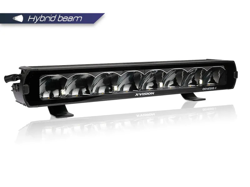 OPTIBEAM Genesis II 600 Hybrid beam er den nyeste evolution af den populære X-Vision Genesis-serie. Denne rammeløse LED-lysbro på 54,8 cm kombinerer kraftig fjernlysbelysning med elegant Gemstone positionslys mellem LED-modulerne. Med imponerende 7400 lumen faktisk målt lysudbytte og 595 meters rækkevidde (1 lux) er dette den ideelle løsning til krævende køreforhold. Hybrid beam-teknologien sikrer både bred belysning og ekstremt lang lyskegle. Godkendt til vejbrug med E-mærkning R10 og R112. Den naturlige farvetemperatur på 4500K giver optimal kontrast og reducerer øjentræthed ved langvarig kørsel. Bred spændingskompatibilitet på 9-36V gør den velegnet til både personbiler, varevogne, lastbiler og arbejdsmaskiner. To driftstilstande: Fuld effekt (7,85A) til off-road eller dæmpet tilstand (3,11A, 4000lm) til lovlig vejbrug. Leveres med 2,2 meter kabel og praktisk 4-pin DTP-stik. 60 måneders garanti.