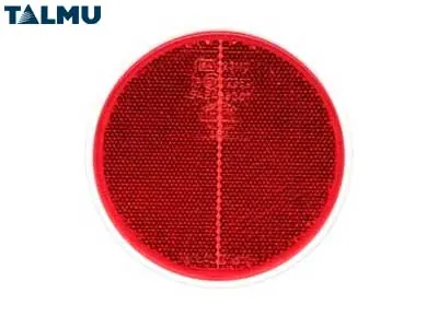 Professionel rød reflector fra TALMU med diameter på 68mm, ideel til montering på køretøjer, trailere og anhængere. Denne selvklæbende sikkerhedsreflektor leverer pålidelig synlighed i mørke og dårlige vejrforhold. Den klæbende bagside sikrer nem og hurtig montering uden behov for boring eller specialværktøj. Reflektoren er fremstillet til at modstå vejrpåvirkninger og opfylder kravene til sikkerhedsmarkering på forskellige køretøjstyper. Med sin standardstørrelse på 68mm passer den perfekt til montering på bagsiden af trailere, siderne af lastbiler, varevogne og andre erhvervskøretøjer. Den røde farve signalerer tydeligt køretøjets position og dimensioner for øvrig trafik, hvilket øger sikkerheden markant, især ved parkering og manøvrering i mørke. TALMU leverer kvalitetsprodukter til professionel køretøjsmarkering.