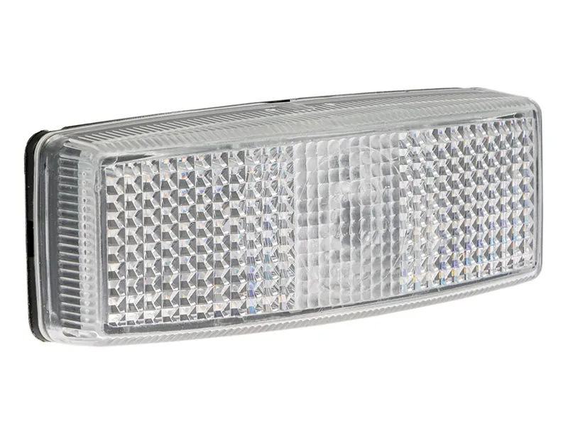 Professionelt hvidt sidemarkeringslys fra TALMU med integreret reflektor for optimal synlighed. Lysenheden er udstyret med T10 fatning (1168) og har en skrueafstand på 45mm, hvilket gør monteringen ligetil. Med kompakte mål på 110x40x25mm passer dette sidemarkeringslys perfekt til lastbiler, trailere, campingvogne og andre erhvervskøretøjer. Reflektoren sikrer maksimal synlighed både når lyset er tændt og slukket, hvilket øger sikkerheden i trafikken. Konstruktionen er solid og pålidelig, designet til at holde selv under barske vejrforhold. Dette sidemarkeringslys er ideelt til afmærkning af køretøjets sider i overensstemmelse med gældende lovgivning og sikrer, at dit køretøj er tydeligt synligt fra siden, både dag og nat. Nem udskiftning af pære takket være standard T10 fatning.