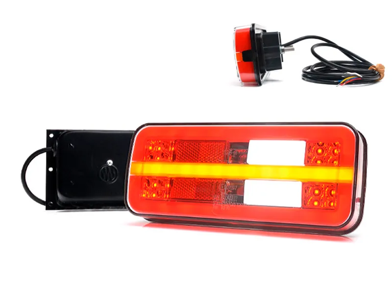 Professionel multifunktionel LED baglygte fra Was med komplet funktionalitet til erhvervskøretøjer. Denne alsidige baglygte kombinerer positions-, bremse-, blinklys-, baklys- og tågelysfunktion i én robust enhed på 200mm. Med ECE-godkendelse og IP 66/68 klassificering er lampen ideel til lastbiler, trailere, varevogne og arbejdskøretøjer. Den 2 meter lange kabelforsyning giver nem montering, også på større køretøjer. Inkluderet reflektor øger synligheden yderligere. Lampen lever op til europæiske vejtrafikstandarder og kan anvendes både til ny montering og som erstatning. Den kompakte konstruktion på 200,5 x 85,3 x 61mm gør den nem at integrere i forskellige køretøjstyper, mens den robuste udførelse sikrer lang levetid selv under krævende forhold.