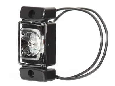 Professionel LED markeringslygte fra WAS til frontmontering på lastbiler, trailere og erhvervskøretøjer. Dette hvide positionslys er ECE-godkendt og opfylder alle lovkrav til vejbrug. Med kompakte mål på 72x32x23mm passer lygten diskret ind på enhver facade. Den robuste konstruktion er IP66/68-klassificeret, hvilket sikrer fuld beskyttelse mod støv, vand og vejsalt - selv under hårde vejrforhold. Lygten fungerer på både 12V og 24V systemer, hvilket gør den ideel til alle typer køretøjer. Montering er nem via 2 huller med ø5mm og 58mm centerafstand. Leveres med 220mm tilslutningskabel (0.75mm²), så du kan montere den præcis hvor du har brug for den. Perfekt til professionelle transportvirksomheder og private, der ønsker pålidelig og lovlig markering af deres køretøj.