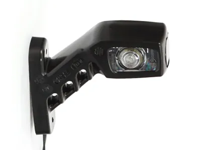 Professionelt LED sidemarkeringslys fra WAS med intelligent 45° gummiarm til optimal synlighed. Dette højre sidemarkeringslys kombinerer hvidt og rødt lys for maksimal sikkerhed og overholder ECE-godkendelse. Konstruktionen er ekstremt robust med IP66/68 klassificering, hvilket sikrer fuld funktionalitet under alle vejrforhold. Med en længde på 135mm og vertikal monteringsplade monteres lyset nemt med 2xM6 skruer med 79mm hulafstand. Den fleksible gummiarm giver ideel positionering og beskytter mod skader ved påkørsel. Leveres med 280mm kabel (0.75mm²) for nem installation. Perfekt til lastbiler, trailere, busser og specialkøretøjer hvor synlighed er afgørende. Universelt 12-24V spændingsområde sikrer kompatibilitet med både person- og erhvervskøretøjer.