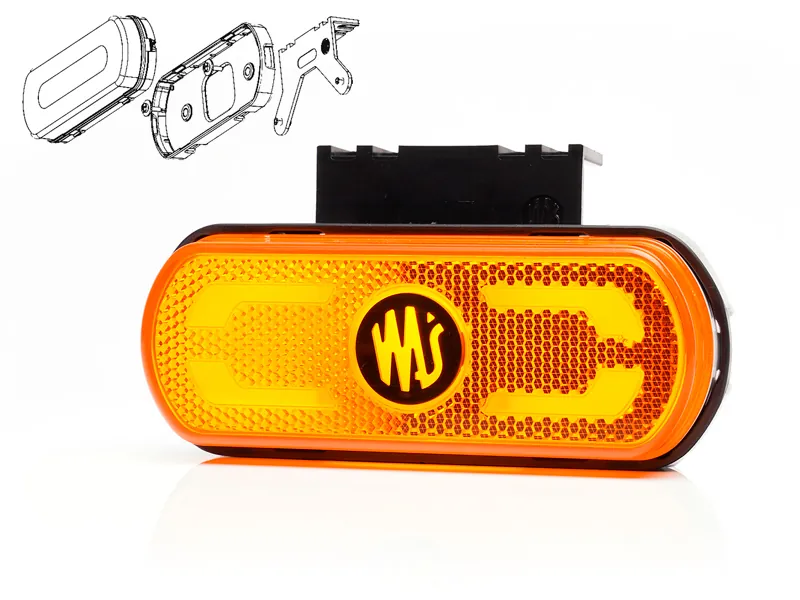 Professionelt LED sidemarkeringslys fra Was med integreret blinklys funktion i amber farve. Dette multifunktionelle markeringslys er designet til både 12V og 24V systemer, hvilket gør det ideelt til lastbiler, trailere, busser og erhvervskøretøjer. Lampen kan monteres både horisontalt og vertikalt med en samlet højde på 70,7 mm inklusiv beslag og en dybde på 47 mm. Med ekstremt robust IP 6K9K klassificering tåler den højtryksspuling og hårde vejrforhold. Godkendt efter ECE og ADR standarder til professionel brug på vejen. Kabellængden på 220 mm giver fleksibel installation, og den kompakte konstruktion på 133,80 x 53,00 x 25,00 mm sikrer nem montering på de fleste køretøjstyper. Den klare amber farve giver optimal synlighed i trafikken, mens den dobbelte funktion som både sidemarkeringslys og retningsviser optimerer sikkerheden på erhvervskøretøjer.